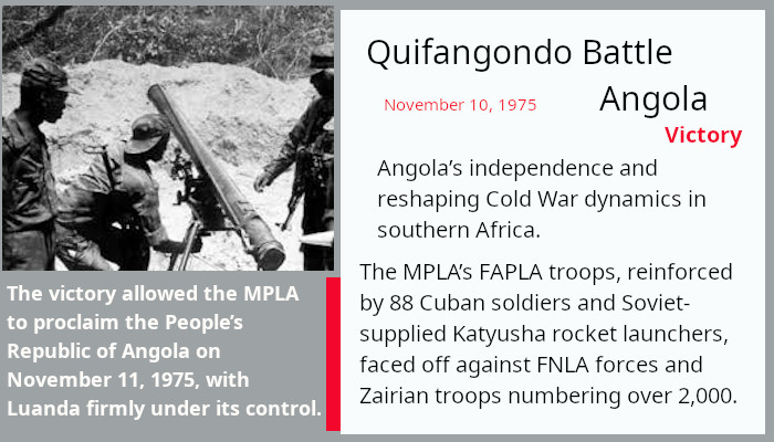 This important battle took place on November 10, 1975, near the town of Quifangondo, just north of Luanda, the capital.