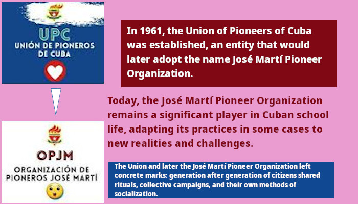 Today, the José Martí Pioneer Organization remains a significant player in Cuban school life, adapting its practices in some cases to new realities and challenges. Its longevity speaks to both the effectiveness of its social mobilization mechanisms and the persistence of an educational model centered on collective values. The evaluation of its legacy will depend largely on the critical distance one chooses to adopt: as a formative collective experience or as a tool for early political alignment.