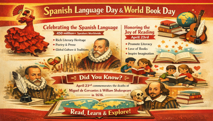 The United Nations proclaimed Spanish Language Day in 2010 to promote cultural diversity and multilingualism. Nevertheless, its observance has deeper historical roots, having been celebrated in Colombia since 1938 under Decree 707. In fact, tributes have been made since 1702, connecting them to Book Day and other literary commemorations.