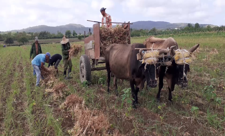 El esfuerzo de cuatro meses de trabajo se revierte en cosecha. Ramón Martínez, un productor de avanzada del municipio Contramaestre, recoge el fruto del esfuerzo personal.