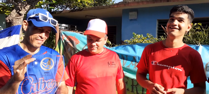 Maikel Merino Ruiz y su entrenador, el experimentado profesor Jesús Bustamante, recibieron el reconocimiento de las autoridades y sus vecinos del municipio Contramaestre, a propósito de su reciente coronación como campeones en la Copa Mundial de Béisbol para ciegos.