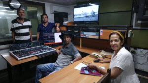 Colectivo integrado por: operador de sonido Guillermo Martínez, locutora Yadmila Fajardo Rondón, asesora Mariam Kile y director Albert García.
